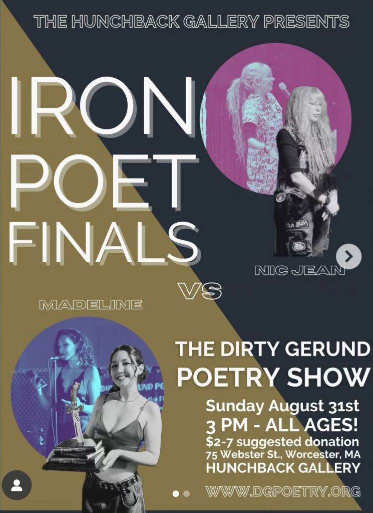 The mic ignites during the daylight hours at Hunchback Gallery as we crown the next champion our ruckus of poetic combat! It’s a full-circle showdown as the ever-evolving Nic Jean – mentor, wordsmith, and poetic Jedi master – steps into the ring to challenge their own apprentice, the reigning Iron Poet champ, Madeline.